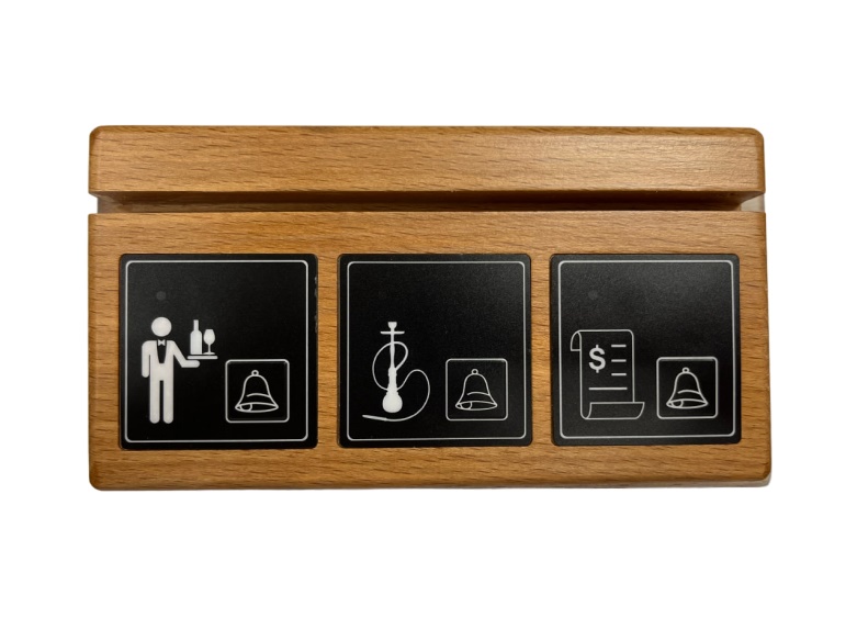 Кнопка R-CALL КДМ-4246: вызов официанта и держатель меню (трехкнопочный, светлый бук)